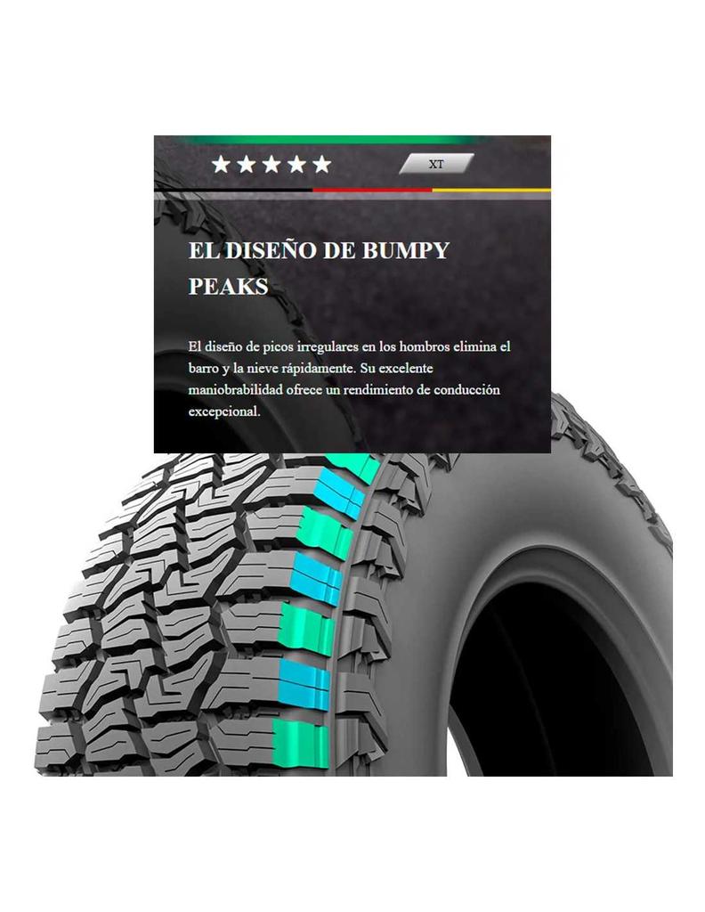 El diseño de picos irregulares en los hombros elimina el barro y la nieve rápidamente. La excelente capacidad de manejo ofrece un rendimiento de conducción espectacular.